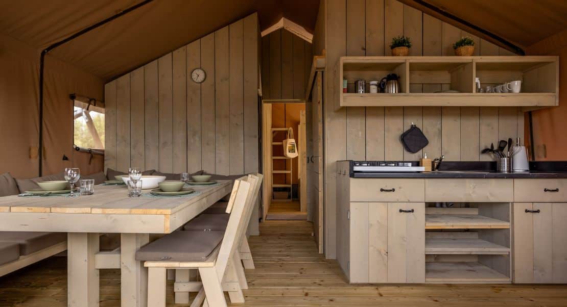 In the middle of the beautiful nature reserve of Dilsen-Stokkem, we realized a unique glamping project: two fully equipped safari tents on the water. Only accessible by canoe, allowing guests to truly disconnect and fully immerse themselves in nature. A special experience you won’t easily find anywhere else!
