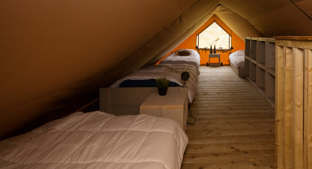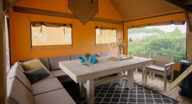 The lodge tents are fully furnished with a comfortable lounge sofa and a large dining table, a spacious veranda, and a fully equipped kitchen. Moreover, an additional floor was added to the lodges. This expansion is ideal for families with children, and it also makes the glamping lodge highly suitable for groups. At RCN Holiday Park het Toppershoedje, guests enjoy a fabulous holiday close to the North Sea beaches in this stylish and luxurious glamping accommodation.